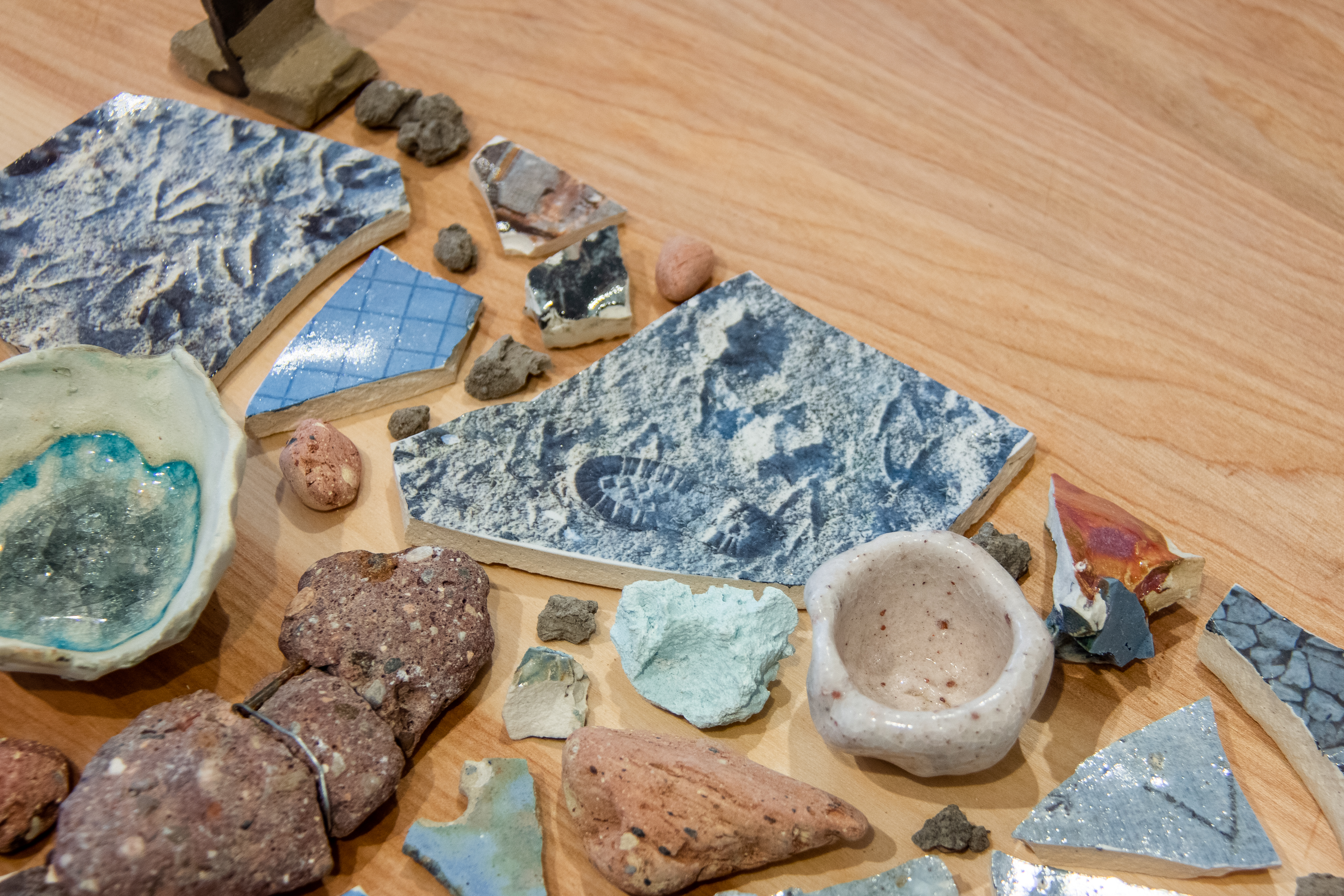 “All over Chicago, if you know where to find them, there are old clay pits– remnants of a now-disappeared brickmaking industry, which built the very architecture that eventually obscured it. Saffronia Downing discovered the pits’ locations in an 1891 industrial atlas of the city. It’s a typical example of what she looks for: stories and connections, lying just beneath notice. Her work is evolved from procedures that have little to do with conventional ceramic repertoire. She is a professional noticer of things.“
